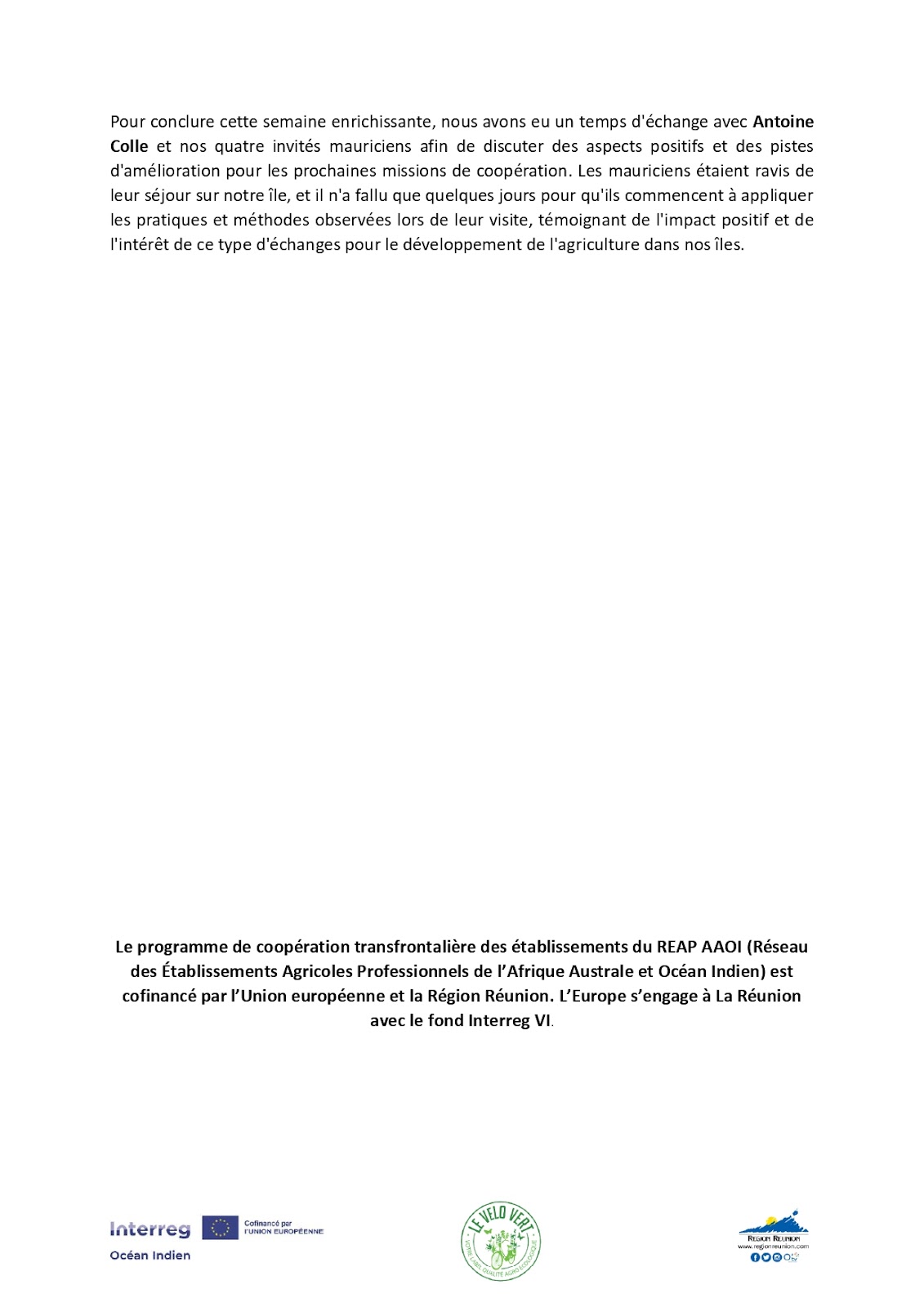 FORMATERRA Réunion et l'ACADEMIE DU VELO VERT à Maurice ,deux établissements du réseau REAP AAOI engagés dans un travail collaboratif sur la formation à l'agriculture durable en milieu tropical insulaire